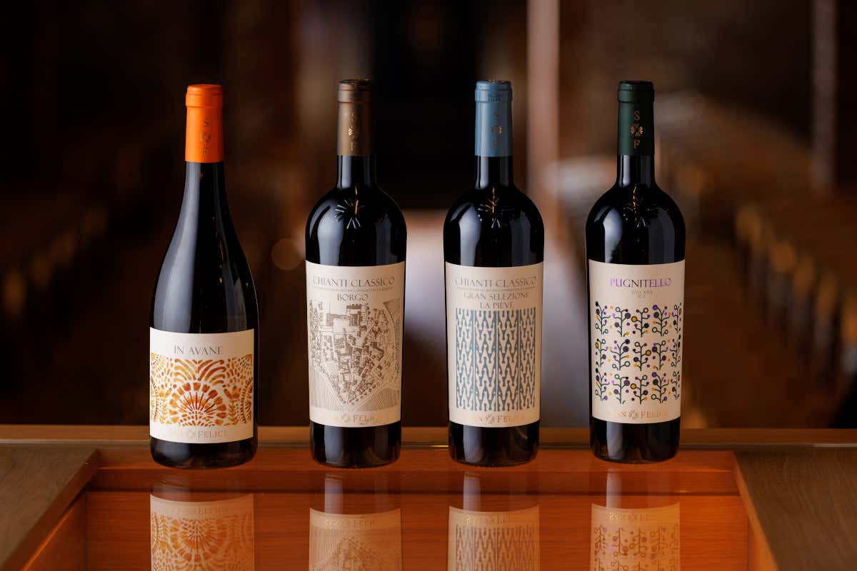 Il cuore concettuale del progetto affonda le radici nel Vitiarium, il vigneto sperimentale avviato negli anni Ottanta per il recupero e la tutela degli antichi vitigni toscani quasi scomparsi. Un progetto pionieristico che ha contribuito in modo concreto alla salvaguardia della biodiversità viticola regionale e che oggi si traduce in una gamma capace di raccontare l’identità dei vigneti che circondano l’antico borgo medievale di San Felice. Vigneti coltivati secondo i principi della viticoltura rigenerativa, in fase di conversione biologica, interpretati con uno stile che privilegia equilibrio, precisione e leggibilità.