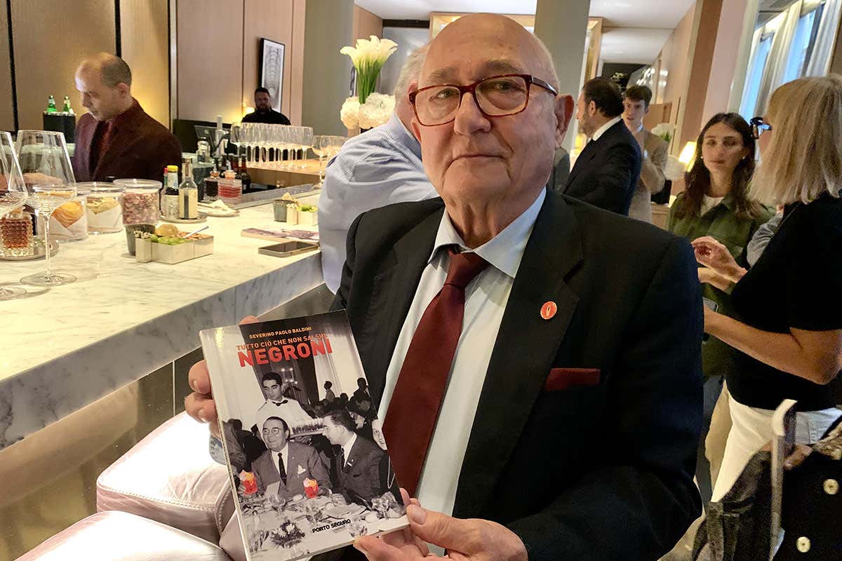 Baldini, che ha dato alle stampe il volume “Tutto ciò che non sai sul Negroni”, ne ha raccontato la storia nei dettagli, partendo dal 1919, quando a Firenze, nella centralissima Drogheria Casoni frequentata dall’aristocrazia, Camillo Negroni chiese a Fosco Scarselli, dietro il bancone, di rinforzare l’Americano, che risultava a suo dire un po’ leggero. Si scelse di aggiungere a Vermouth Rosso e Bitter Campari 1/3 di gin. La ricetta firmata Negroni-Scarselli funzionò e la clientela cominciò a chiedere un Americano rinforzato come quello del Conte Negroni. In breve la richiesta a Scarselli fu quella di un Negroni. Il seguito è un successo internazionale lungo 104 anni.